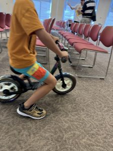 その後も、振り向けば大人の方々も乗られており、「タイヤ外れないかぁ~?」「ハンドル壊れないかな~?」とヒヤヒヤはしたものの動いている間は、まぁええか!?タイや外しても車にある道具で何とか修理は出来るだろうと考えて、ありのままでいいや!と横目では走りを追い駆け乍ら静観しておりました。