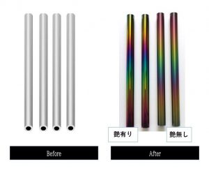 今回は市販のアルミパイプにレインボー蒸着加工を実施してみました。