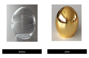 今回は社内試作で、アクリル素材製品に「塗装+蒸着」加工を実施してみました。