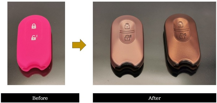 弊社では「表面改質」という特許技術でシリコーン素材にも「塗装・蒸着・印刷」を実現しております