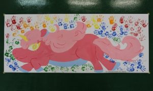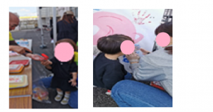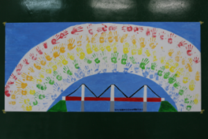 地域の学生さんたちが、虹の下絵を描き、未来への色を持ち寄ってくれました。